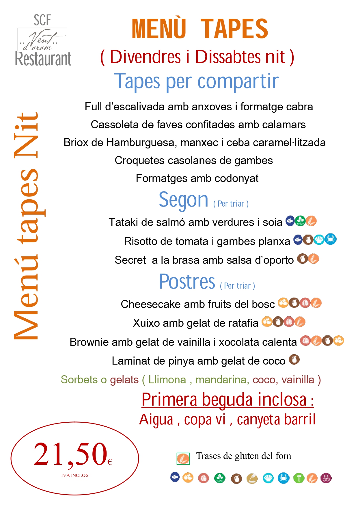 MENÚ TAPES NIT 21,50 €