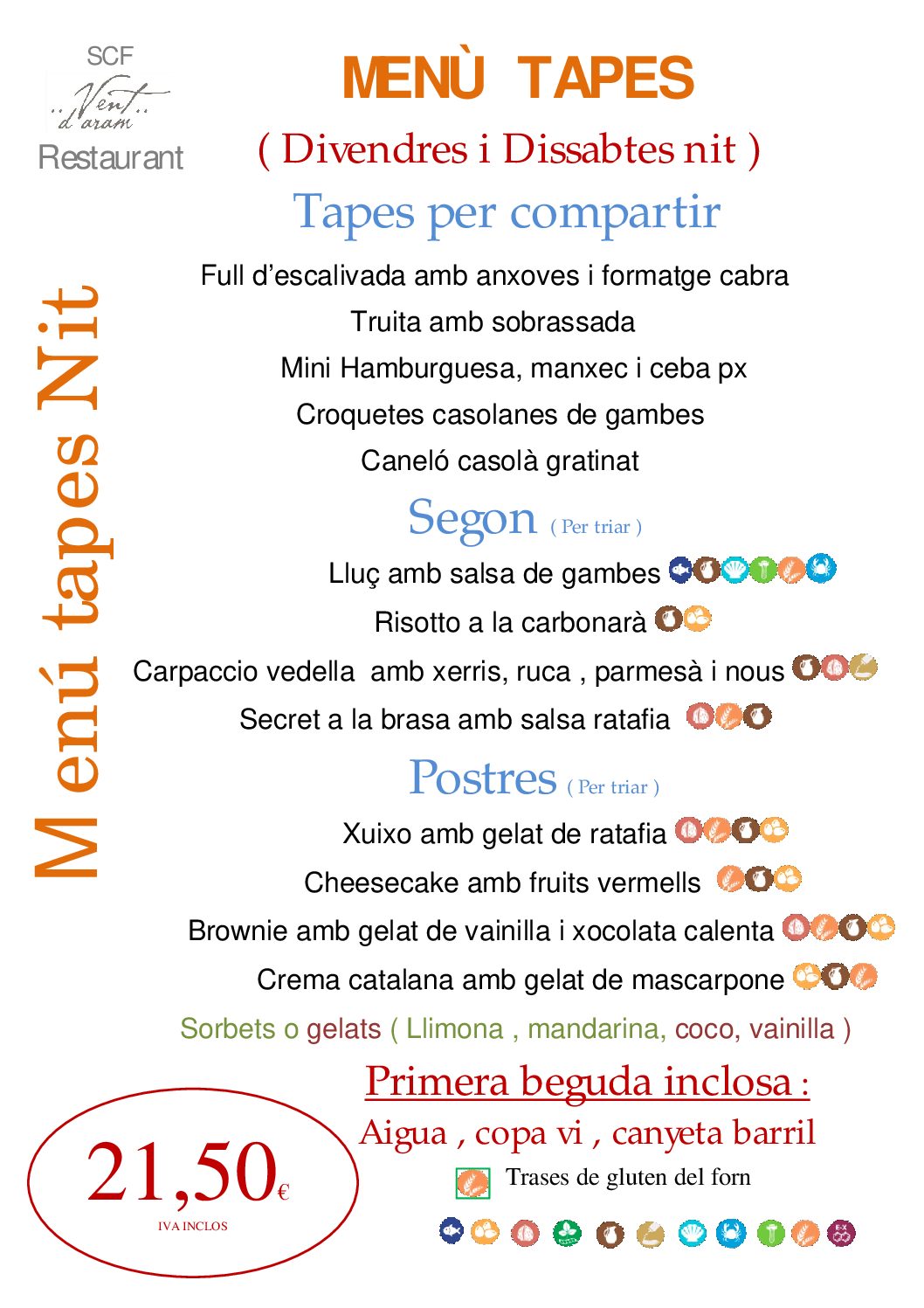 PER FER RESERVES TRUCAR AL 972 844 244 o bè al mail : info@ventdaram.com